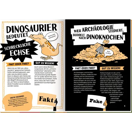 Fakt oder Fake? In diesem Buch stecken jede Menge kuriose Fakten und mindestens ebenso viele haarsträubende Lügengeschichten über Dinos und Co. Wer findet heraus, wie es tatsächlich in der Urzeit zuging?