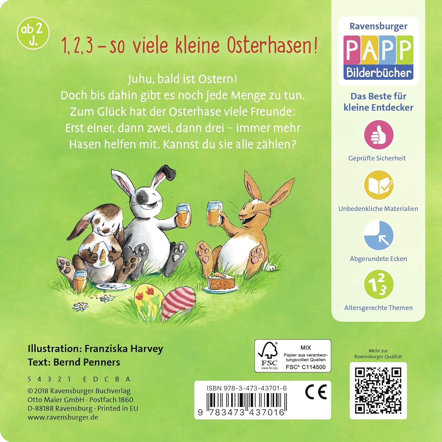 Bald ist Ostern und das bedeutet viel Arbeit für den Osterhasen. Doch zum Glück ist er nicht alleine: erst einer, dann zwei, dann drei – immer mehr Hasen helfen ihm bei den Vorbereitungen. Eine lustige Reimgeschichte zum Mitsprechen und Mitzählen.