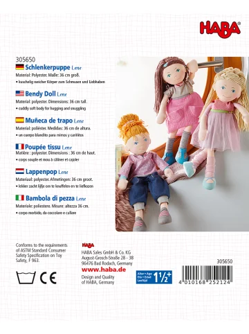 HABA Schlenkerpuppe Lene mit Zubehör, 36 cm, Neuware