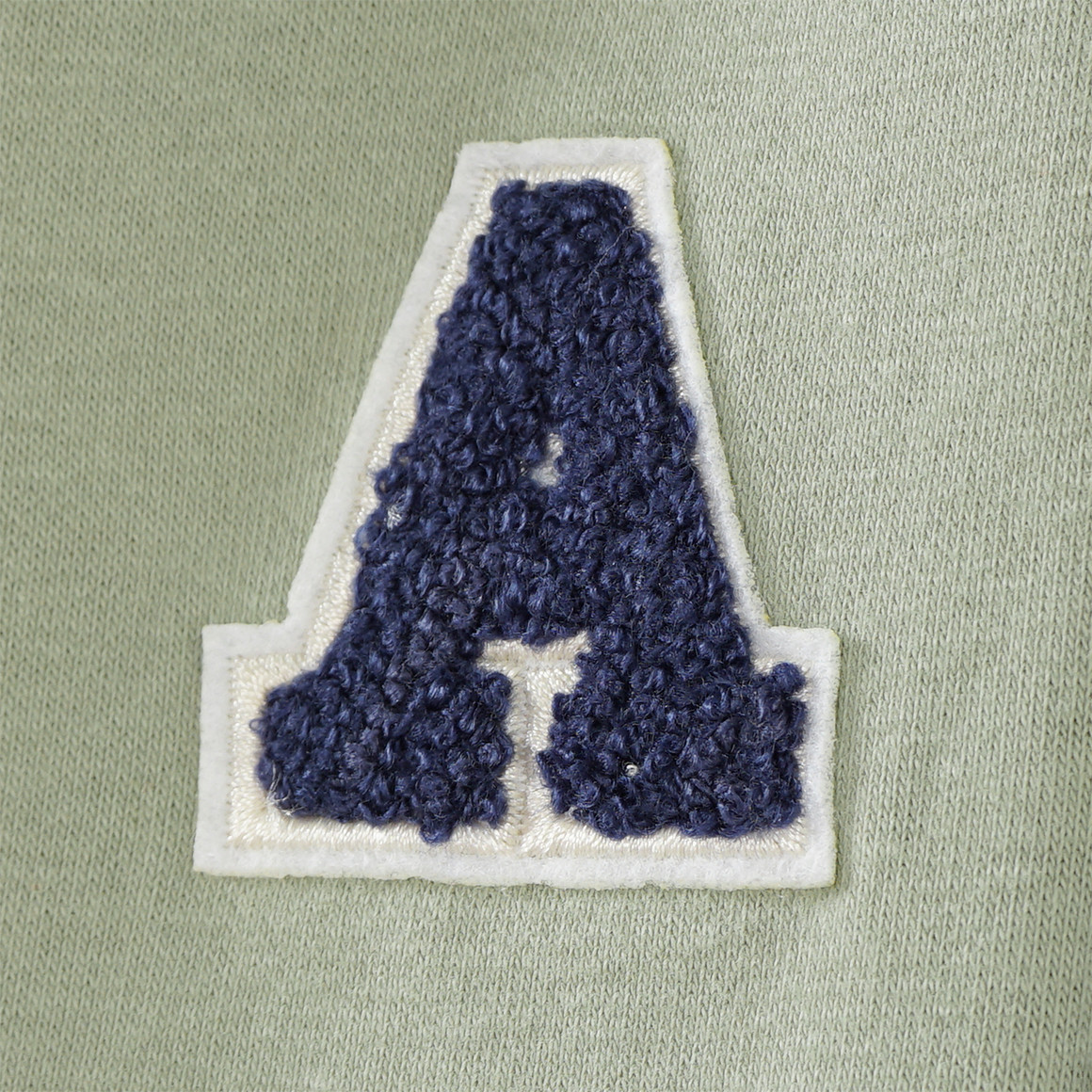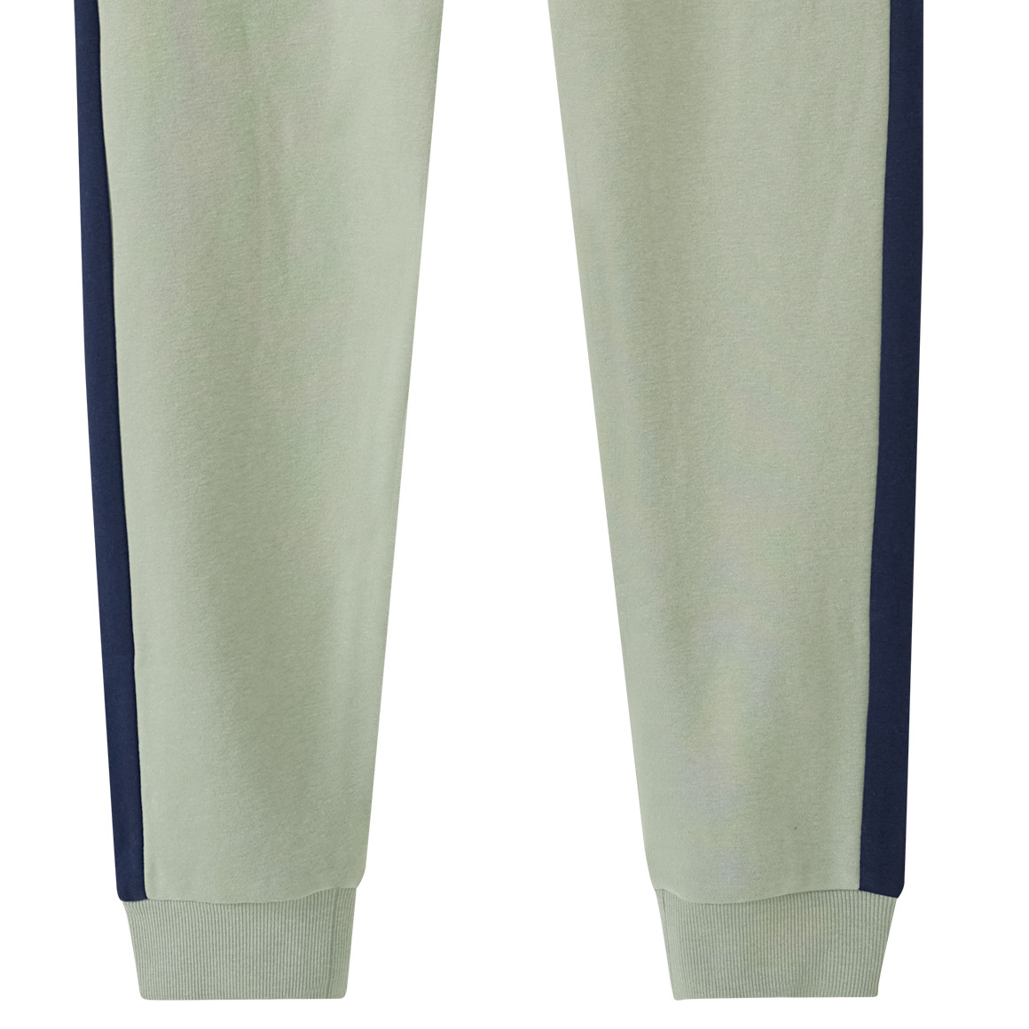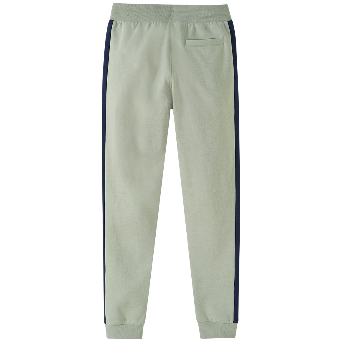 Kann man immer gebrauchen! Gemütliche Jogginghose in hellem Oliv mit je einem Streifen in Dunkelblau an den Beinen. Extra weiches Material sowie elastische Rippbündchen sorgen für einen hohen Tragekomfort. Im Bund befindet sich ein fixierter Tunnelzug. Mit zwei Eingrifftaschen vorne und einer Gesäßtasche. Auf dem linken Oberschenken befindet sich eine kleine "A" Applikation in Weiß mit dunkelblauer Stickerei.