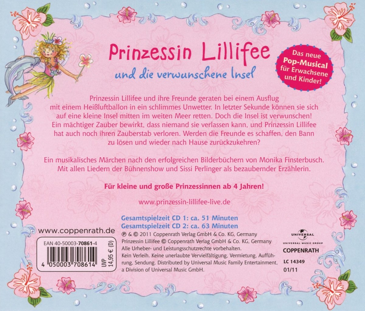 Prinzessin Lillifee und die verwunschene Insel: Das Original-Hörspiel zum Pop-Musical Bei einem Ausflug mit dem Heißluftballon geraten Prinzessin Lillifee und ihre Freunde in ein Unwetter. In höchster Not schaffen sie es auf eine kleine, tropische Insel mitten im weiten, blauen Meer. Doch dieses Inselparadies ist verwunschen. Ein mächtiger Zauber bewirkt, dass niemand es verlassen kann. Und da Lillifee bei der Bruchlandung ihren Zauberstab verloren hat, scheint die Lage ausweglos: Wie sollen Lillifee und ihre Freunde wieder nach Hause kommen? Um dem Geheimnis der Insel auf die Spur zu kommen, besteigt Prinzessin Lillifee den Berg, auf dessen nebligem Gipfel der Herrscher der Insel wohnt. Er stellt Lillifee drei Aufgaben. Nur wenn sie die erfüllt, wird er den Fluch von der Insel nehmen und alle Wesen, die dort gefangen sind, wieder nach Hause lassen...