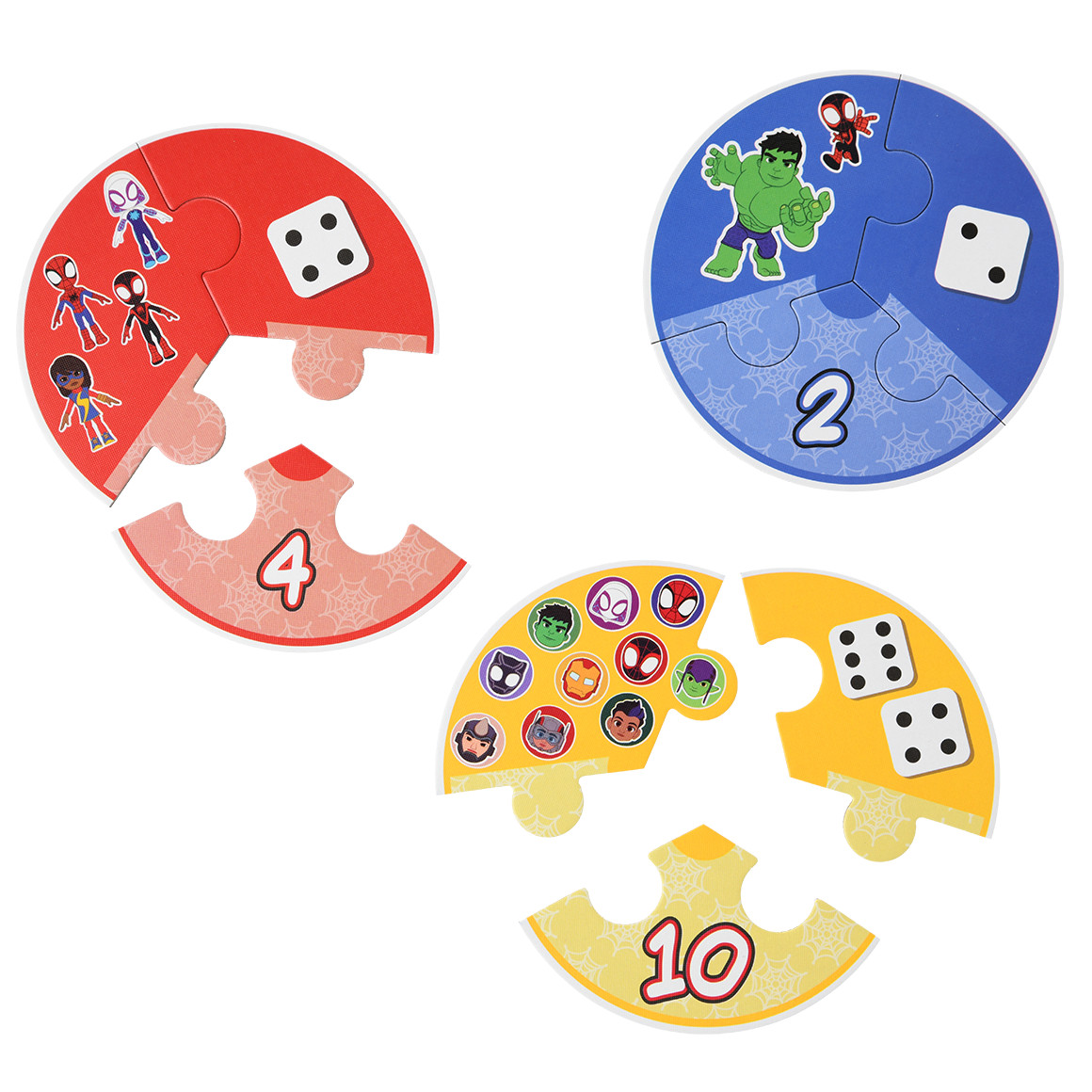 Zahlen lernen mit Spidey und seinen Freunden! 10 Zahlenpuzzle von "Spidey and his amazing friends" von MARVEL in verschiedenen Farben. Ein Puzzle besteht jeweils aus drei Puzzleteilen mit unterschiedlichen Symbolen. Maße ca. 13,5 x 13,5 cm (BxH).