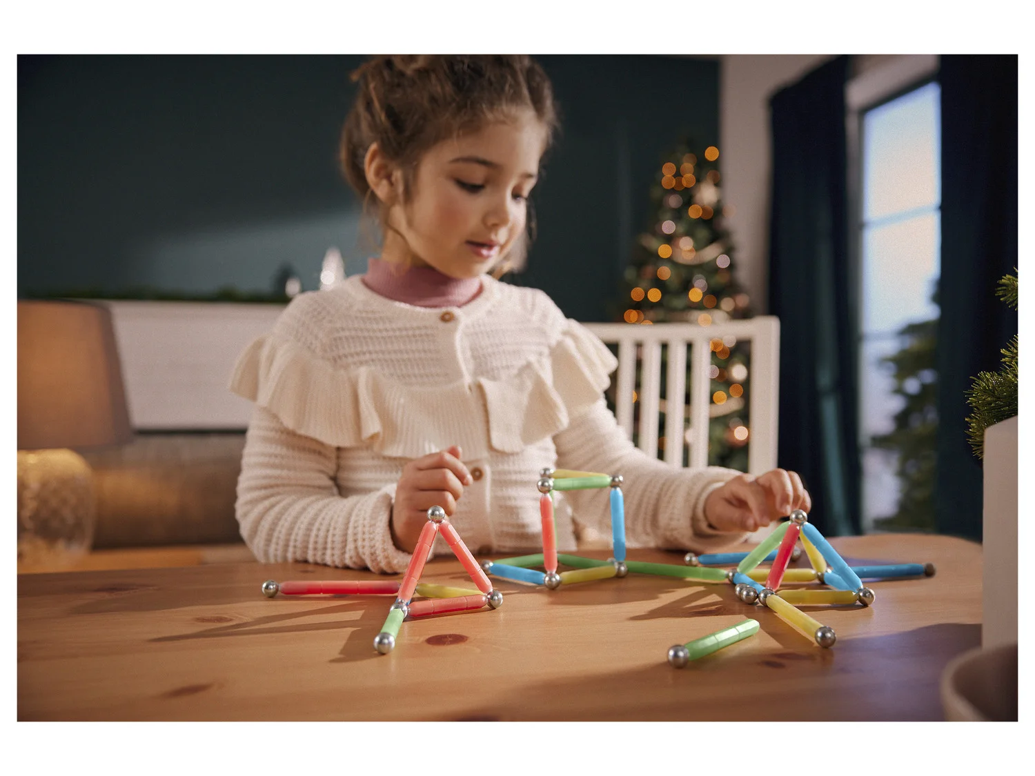 - Inhalt: 6 große magnetische Stäbe, 28 kleine magnetische Stäbe, 26 Kugeln