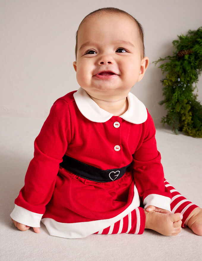 Für kleine Weihnachtsmänner und -frauen: das Kleid mit Leggings im Weihnachts-Look. Es zeigt sich mit niedlicher Herz-Stickerei und ist aus reiner Baumwolle gefertigt.