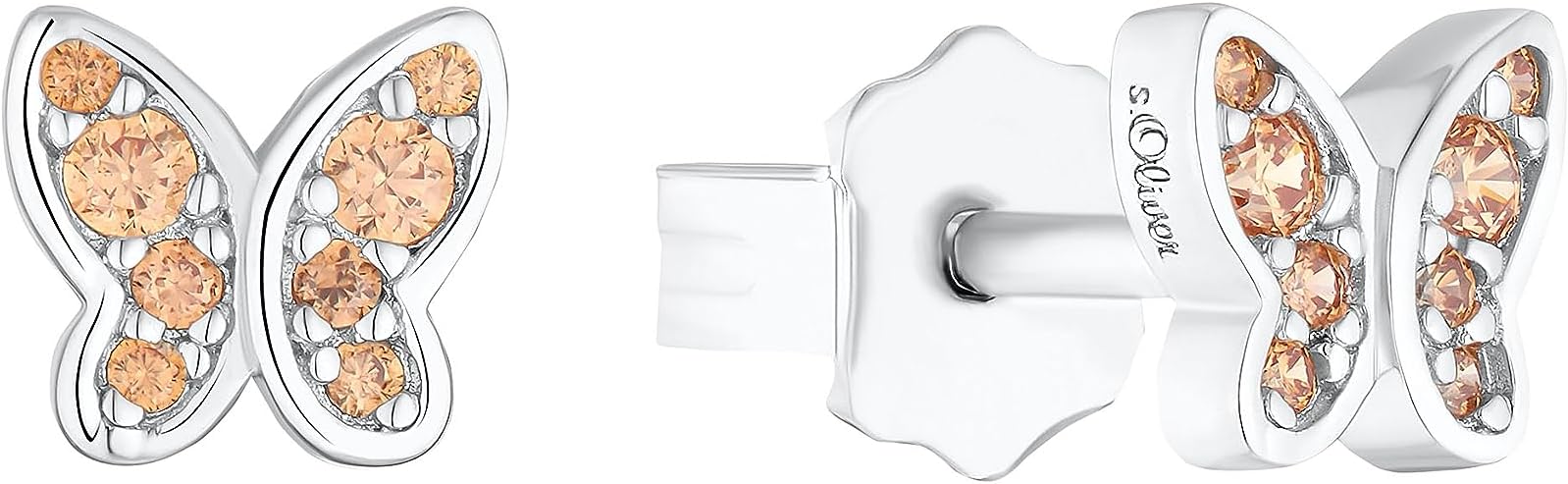 s.Oliver Ohrstecker 925 Sterling Silber Kinder Ohrschmuck, mit Zirkonia synth., 0,5 cm, Silber, Schmetterling, Neuware